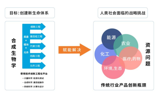 圖丨 Engineering Biology Insights 啟動(dòng)儀式啟動(dòng)儀式結(jié)束后,劉炯圍繞《全球最值得關(guān)注的 50 家合成生物學(xué)企業(yè)》發(fā)表了主題演講,他在演講中分享了合成生物學(xué)的演進(jìn)過(guò)程及重要意義,他指出,真正的合成生物學(xué)讓人類擁有了一種造物能力,這是一個(gè)非常復(fù)雜的過(guò)程,同時(shí)也是多學(xué)科交叉的產(chǎn)物。圖丨 CB Insights 中國(guó)聯(lián)合創(chuàng)始人劉炯傳統(tǒng)工業(yè)生產(chǎn)的效率亟需 “提速換擋”,這一訴求橫跨化工、能源、環(huán)境、食品甚至是醫(yī)療等眾多板塊。競(jìng)爭(zhēng)加劇,執(zhí)牛耳者必須在效率端自我充能。以合成生物學(xué)為基石的生物合成和制造正在成為引發(fā)變革的主力軍。用工程化思維對(duì)生命體進(jìn)行改造,讓其按需發(fā)揮作用,高效、高質(zhì)量、高集成,這些特性決定了合成生物學(xué)未來(lái)將勢(shì)必激起層層新浪潮。多學(xué)科交叉是合成生物學(xué)的基本特點(diǎn),這讓其應(yīng)用情況并不囿于單一領(lǐng)域,同樣呈現(xiàn)交叉和多面的發(fā)展態(tài)勢(shì)。與基礎(chǔ)學(xué)科和單一技術(shù)不同,合成生物學(xué)更像是一個(gè) “工具”,它從利用生物技術(shù)構(gòu)建功能性生命體(細(xì)胞)出發(fā),散射到不同的應(yīng)用版圖。發(fā)展至今,相關(guān)技術(shù)的發(fā)展也逐漸由科研探索驅(qū)動(dòng)開(kāi)始轉(zhuǎn)向工程能力驅(qū)動(dòng)。圖丨合成生物學(xué)的概念解讀及應(yīng)用方向(來(lái)源:公開(kāi)資料整理)目前,基于合成生物學(xué)理念所成立的公司主要分為三類: