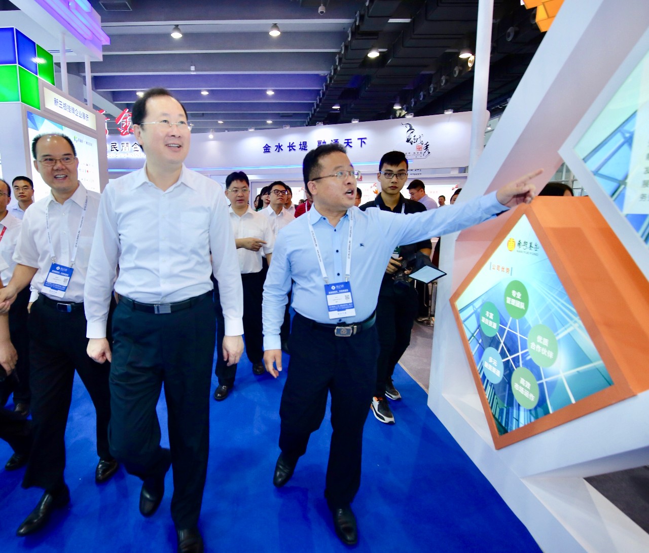 6月22日,第七屆中國(廣州)國際金融交易·博覽會(huì)(簡稱“金交會(huì)”)在廣州·中國進(jìn)出口商品交易會(huì)展館B區(qū)正式開幕。廣東省委副書記、廣州市委書記任學(xué)鋒,廣州市委副書記、市長溫國輝,廣州市委常委、常務(wù)副市長陳志英到金交會(huì)展館巡館調(diào)研。上午11時(shí)許,任學(xué)鋒書記一行專程來到廣州南粵基金集團(tuán)有限公司(簡稱“南粵基金”)展廳,了解南粵基金服務(wù)的廣東省重大投資項(xiàng)目——超視堺第10.5代顯示器全生態(tài)產(chǎn)業(yè)園區(qū)(簡稱“超視堺8K”)項(xiàng)目進(jìn)展情況,南粵基金董事長林濤、總裁曾金賢陪同并介紹相關(guān)情況。