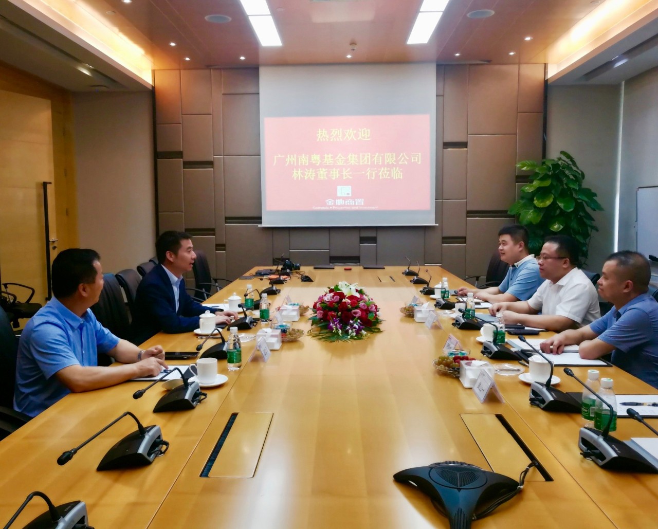 南粵基金副總裁肖磊,金地商置副總經(jīng)理謝文云等參加會(huì)談。