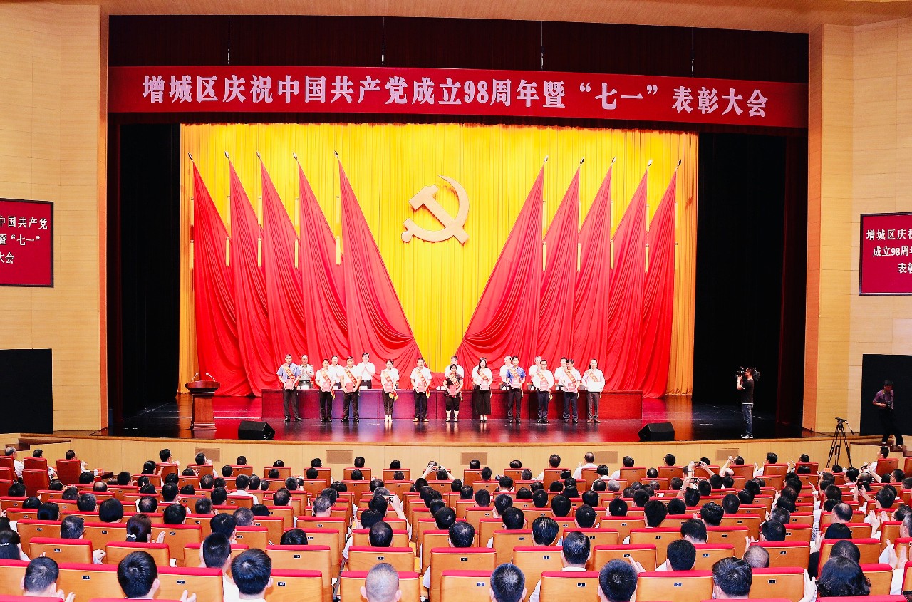 6月27日上午9時,增城區(qū)文化會議中心國歌雄壯,氣氛熱烈。增城區(qū)委隆重舉行慶祝中國共產(chǎn)黨成立98周年大會,表彰全區(qū)優(yōu)秀共產(chǎn)黨員、優(yōu)秀黨務工作者和先進黨組織。南粵基金代表走上領獎臺,自豪捧起“先進黨組織”金光閃閃的獎狀,主席臺下掌聲雷動。