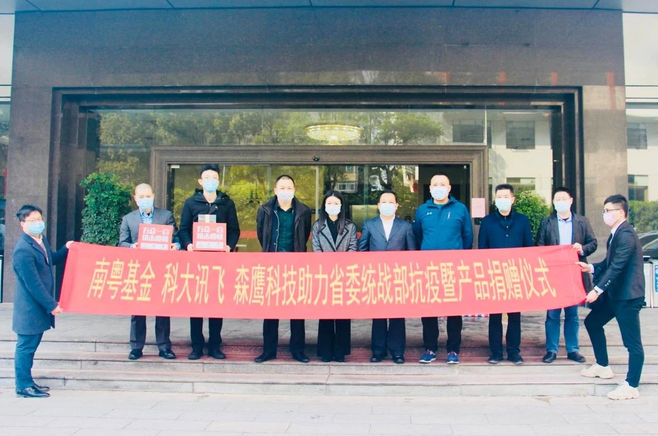 湖南省委統(tǒng)戰(zhàn)部二級(jí)巡視員宋崢嶸、辦公室主任曾志君,南粵基金副總裁陳曉光、科大訊飛湖南區(qū)總經(jīng)理俞仁忠、森鷹科技董事長(zhǎng)唐少林等出席捐贈(zèng)儀式。宋崢嶸巡視員代表受贈(zèng)單位對(duì)三家愛(ài)心企業(yè)表示感謝,她表示省委統(tǒng)戰(zhàn)部將借助科技力量全力支持企業(yè)復(fù)工復(fù)產(chǎn),并希望攜手三家企業(yè)充分發(fā)揮各自平臺(tái)和技術(shù)優(yōu)勢(shì)助力農(nóng)業(yè)和教育等行業(yè)領(lǐng)域?qū)崿F(xiàn)防疫不誤農(nóng)時(shí)、停課不停學(xué)。