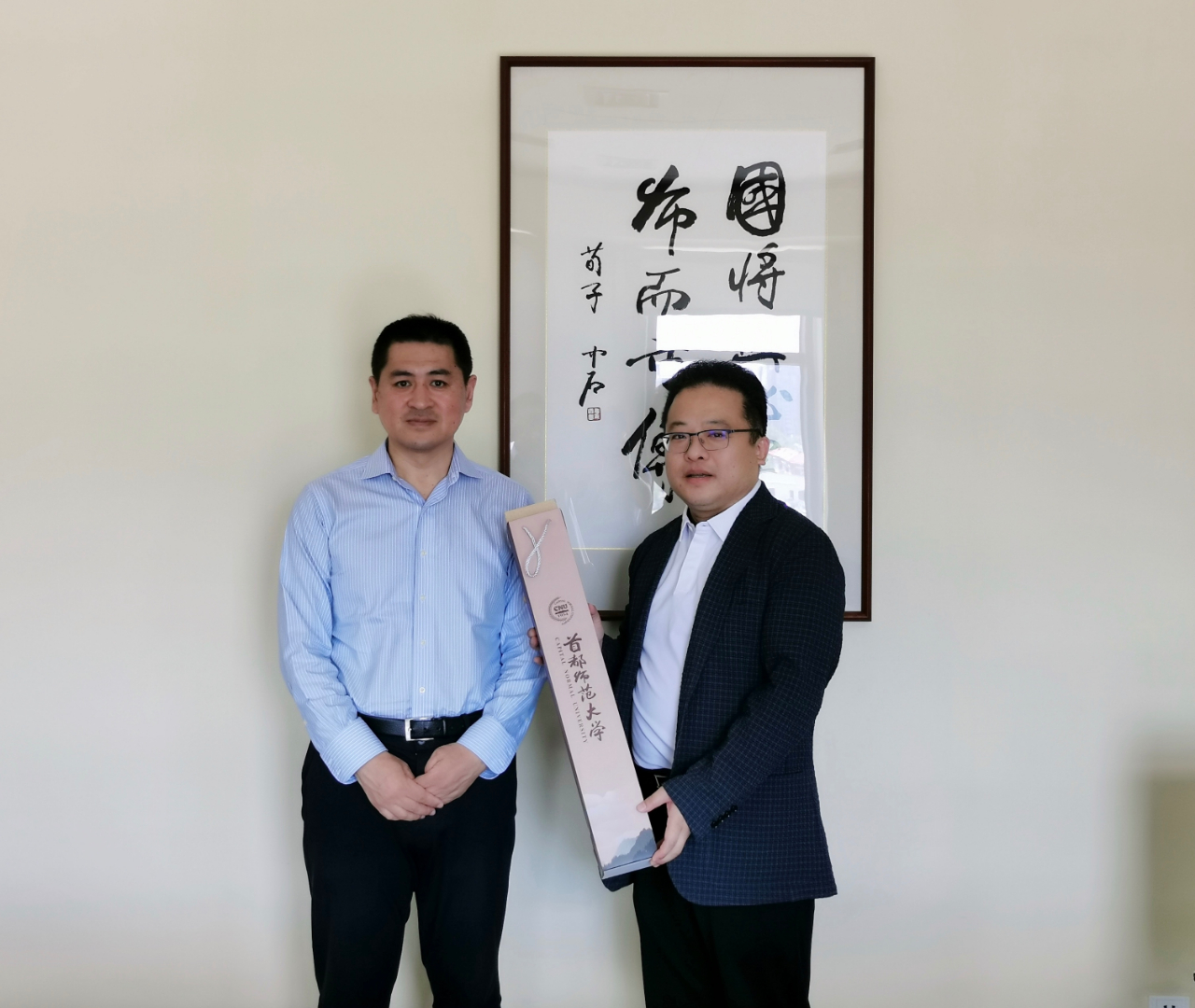 楊志成副校長代表首師大向林濤董事長贈送紀(jì)念品