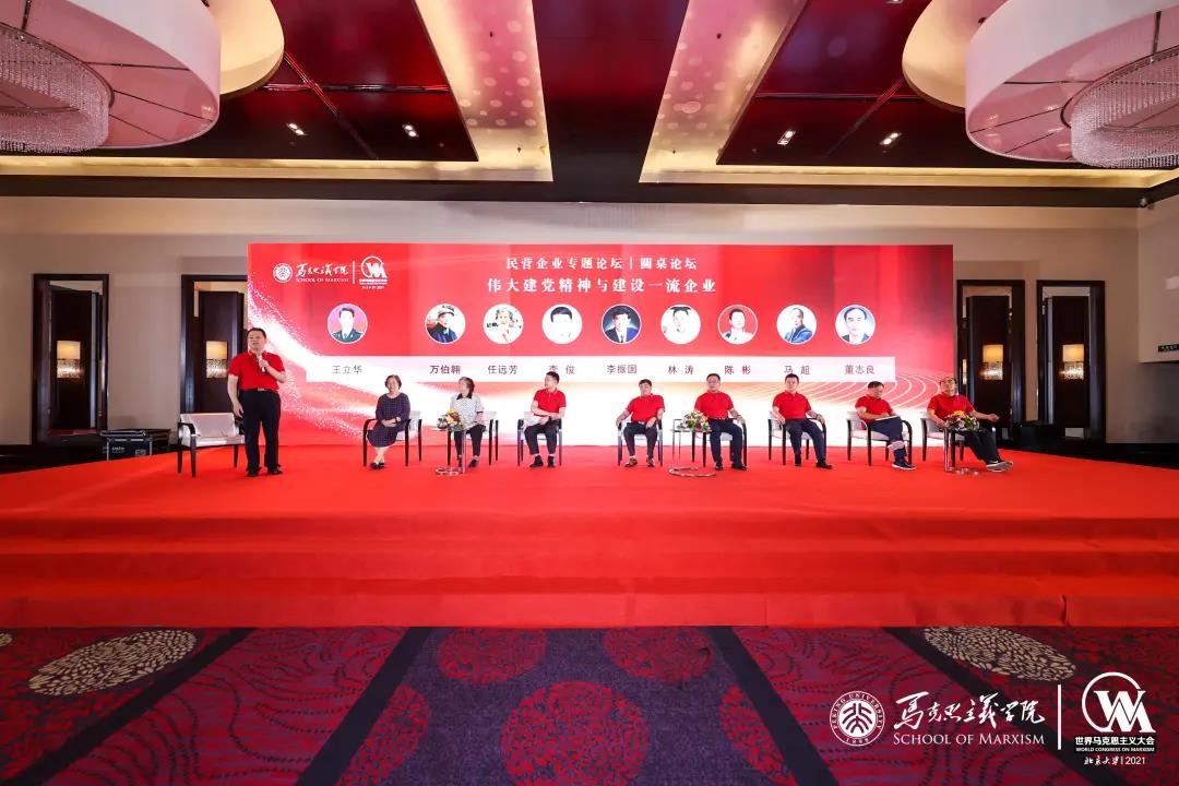 今年正值中國共產(chǎn)黨成立100周年,本屆大會具有特殊而重大的歷史意義。大會以“馬克思主義與現(xiàn)代化”為主題,下設(shè)十四個分論壇和四個高端對話專場,會議以線上和線下相結(jié)合的方式進(jìn)行。北京大學(xué)毛澤東管理思想高級研究班建設(shè)委員會常務(wù)理事、毛管八班班長、南粵基金董事長林濤出席大會,并參加專題論壇和簽約儀式等重要活動。在“憶光輝歷程,慶建黨百年”企業(yè)專題論壇中,林濤董事長與全國人大常委會原委員長萬里之子、北京愛心萬里公益基金會理事長萬伯翱,任弼時之女、全國紅軍小學(xué)建設(shè)工程理事會理事任遠(yuǎn)芳,中國社會科學(xué)院世界社會主義研究中心常務(wù)理事王立華,原國投電力控股股份有限公司黨委副書記、董事李俊,九芝堂股份有限公司董事長李振國,中國國際文化傳播中心副主席陳彬,北京綠宸控股集團創(chuàng)始人、董事長馬超,北京紫金世紀(jì)置業(yè)有限責(zé)任公司黨委副書記董志良等嘉賓一道,圍繞“偉大建黨精神與建設(shè)一流企業(yè)”議題開展圓桌對話。
