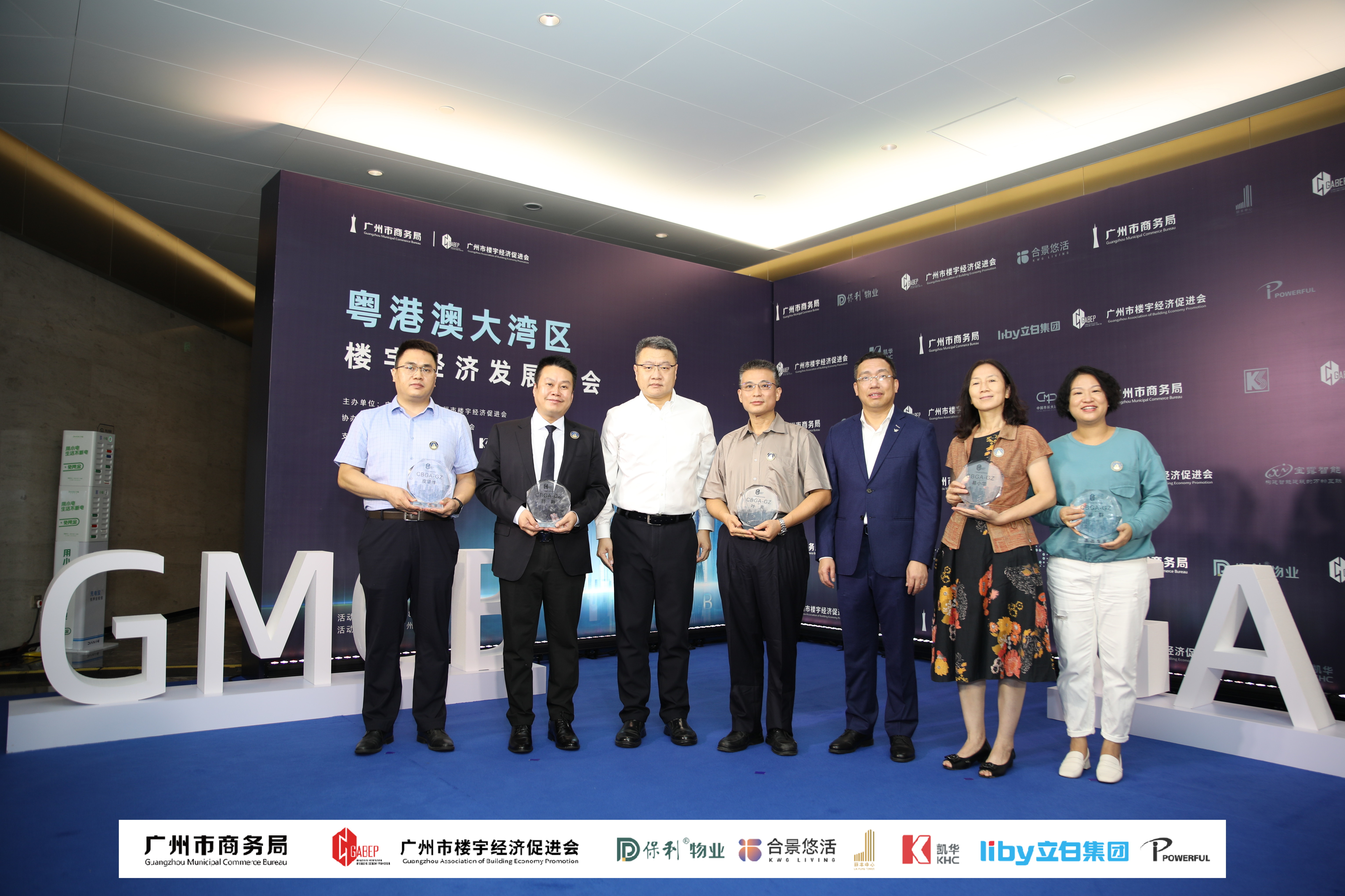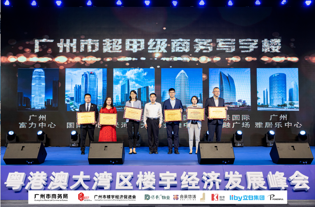 在峰會授牌儀式上,廣州市政協(xié)副主席、民革廣州市委會主委于欣偉、廣州市政府副秘書長高裕躍、廣州市商務局副局長魏敏等領導為獲評樓宇授牌。