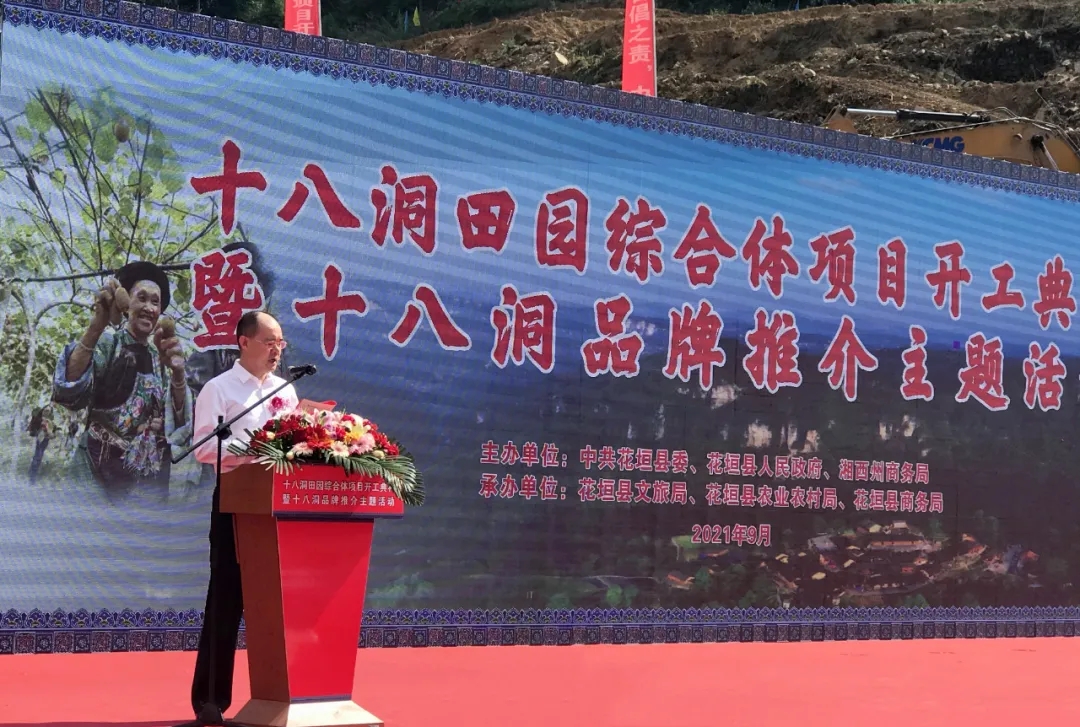 9月25日,精準扶貧首倡之地——湘西州花垣縣十八洞田園綜合體項目開工典禮暨十八洞品牌推介主題活動順利舉行。湘西州委書記虢正貴出席儀式并宣布項目開工和活動開幕,州委副書記、花垣縣委書記廖良輝致辭,州委常委楊彥芳,州委秘書長、辦公室主任向邦偉及州委宣傳部、文旅廣電局、商務局、住建局、自然資源局、教體局等單位負責人出席,南粵基金總裁曾金賢代表業(yè)主單位致辭并見證簽約活動,花垣縣委副書記、縣長隆立新主持儀式,縣委副書記周勝益作十八洞田園綜合體項目介紹及十八洞系列品牌推介。