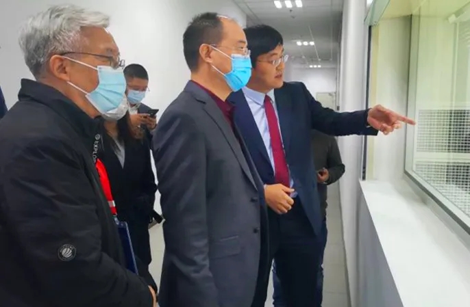 中國(guó)科學(xué)院院士歐陽鐘燦(左)、南粵基金總裁曾金賢(中)在恒美光電黃源董事長(zhǎng)陪同下考察偏光片產(chǎn)線