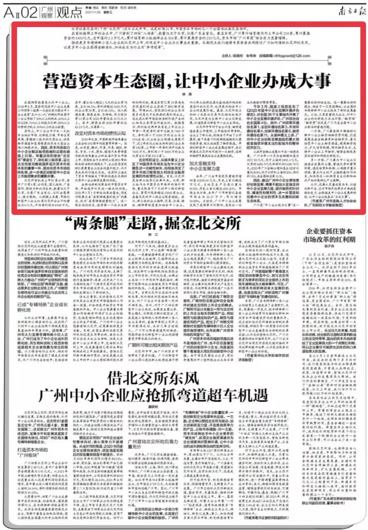 南方日?qǐng)?bào)刊發(fā)林濤會(huì)長署名文章:營造資本生態(tài)圈,讓中小企業(yè)辦成大事