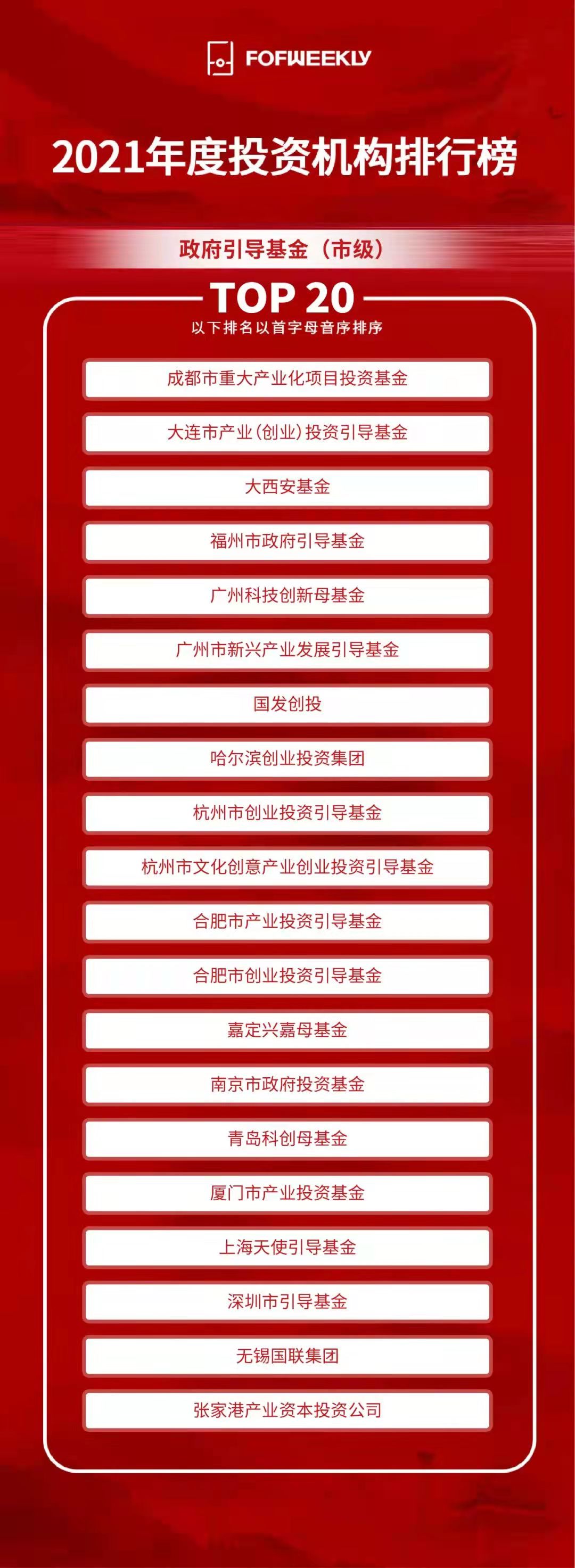 3月18日,行業(yè)權(quán)威媒體《母基金周刊》(FOFWEEKLY)公布“2021年度投資機(jī)構(gòu)排行榜”,南粵基金管理的大連市產(chǎn)業(yè)(創(chuàng)業(yè))投資引導(dǎo)基金(簡稱“大連引導(dǎo)基金”)獲得“政府引導(dǎo)基金(市級(jí))TOP20”榮譽(yù)。