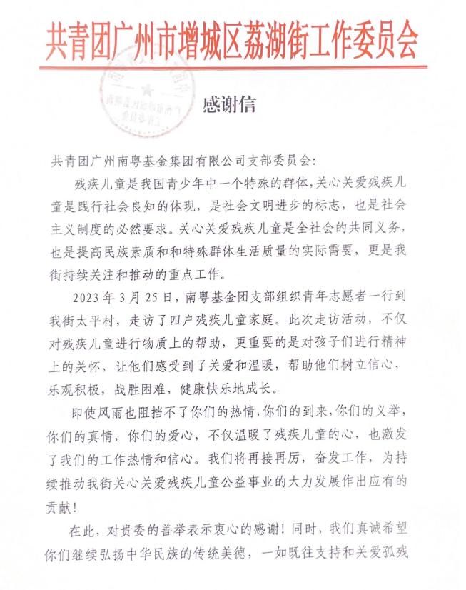 南粵基金還組織青年志愿者一行10余人來(lái)到增城區(qū)荔湖街太平村,走訪慰問(wèn)了四戶殘疾兒童家庭。青年志愿者們與家長(zhǎng)談心、拉家常,深入詢問(wèn)兒童的身體情況和家庭狀況,鼓勵(lì)孩子要保持堅(jiān)強(qiáng)和樂(lè)觀心態(tài),增強(qiáng)戰(zhàn)勝困難的信心和勇氣,努力做陽(yáng)光樂(lè)觀的新時(shí)代好少年。