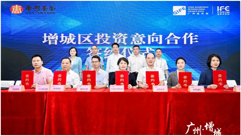 在產融簽約儀式,南粵基金及集團旗下南粵澳洋、南粵國投、中小微金服分別與中國銀行增城分行、中欣創(chuàng)投、傲農生物、袋鼠媽媽集團簽約合作協(xié)議,充分發(fā)揮各自業(yè)務特色與平臺優(yōu)勢,在投融資服務、招商引資、融資擔保和培育賦能等方面開展深入合作。