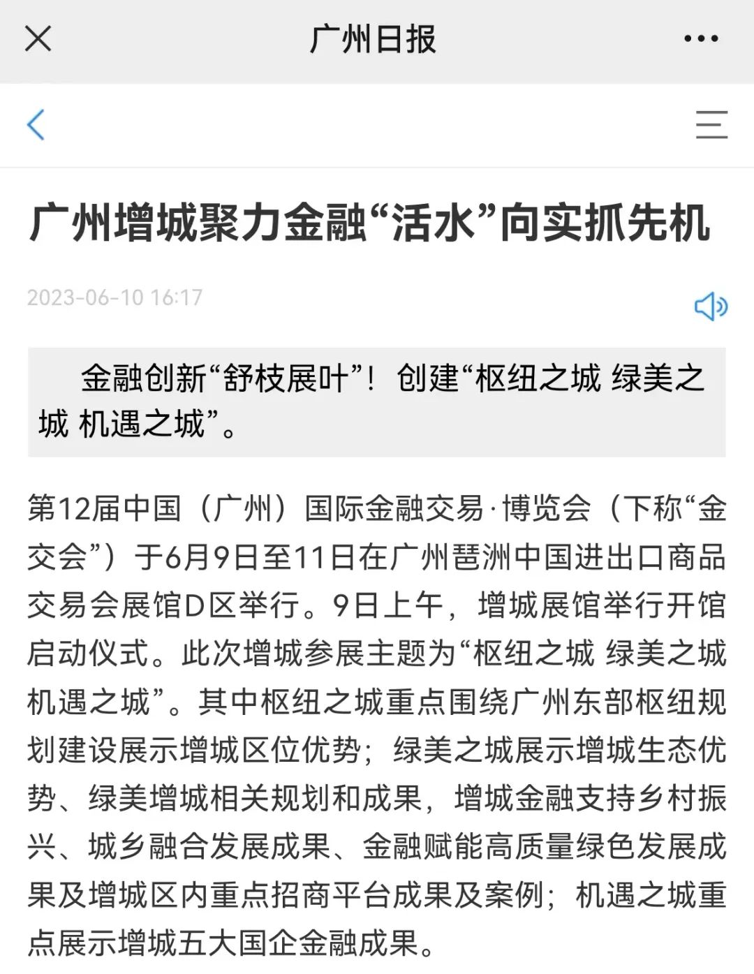 目光向東,增城大有可為!腳步向前,金融大有作為。連日來,增城金融的金交會之旅受到了新華網(wǎng)、中新網(wǎng)、南方日報、廣州日報、21 世紀經(jīng)濟報道等國家省市區(qū)主流媒體廣泛關注、爭相報道!
