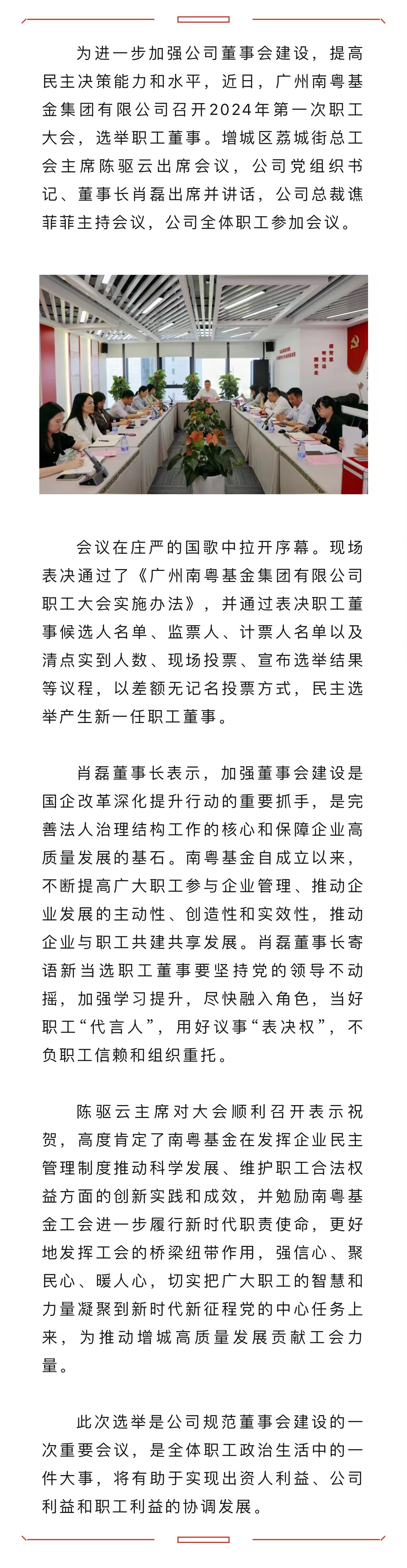 南粵基金召開(kāi)2024年第一次職工大會(huì)選舉產(chǎn)生職工董事