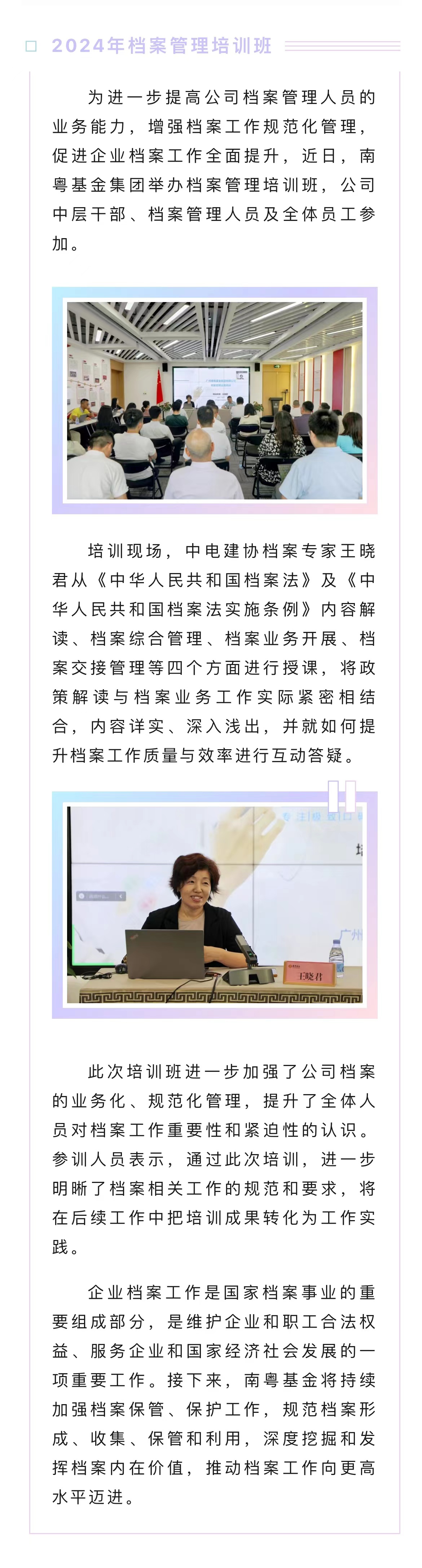 南粵基金集團舉辦2024年檔案管理培訓班