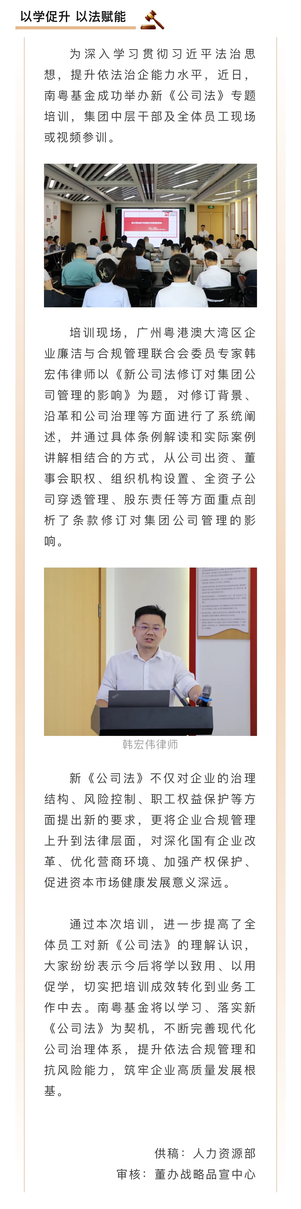 以學(xué)促升 以法賦能——南粵基金開展新《公司法》專題培訓(xùn)