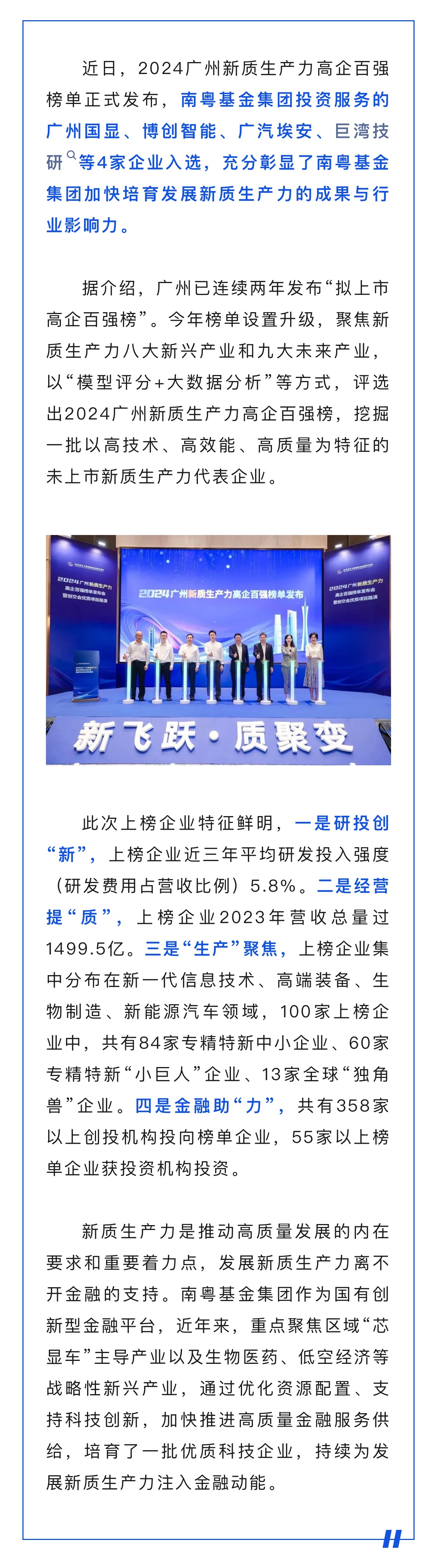 廣州高企百強發(fā)榜 南粵基金投資服務(wù)4家企業(yè)入選