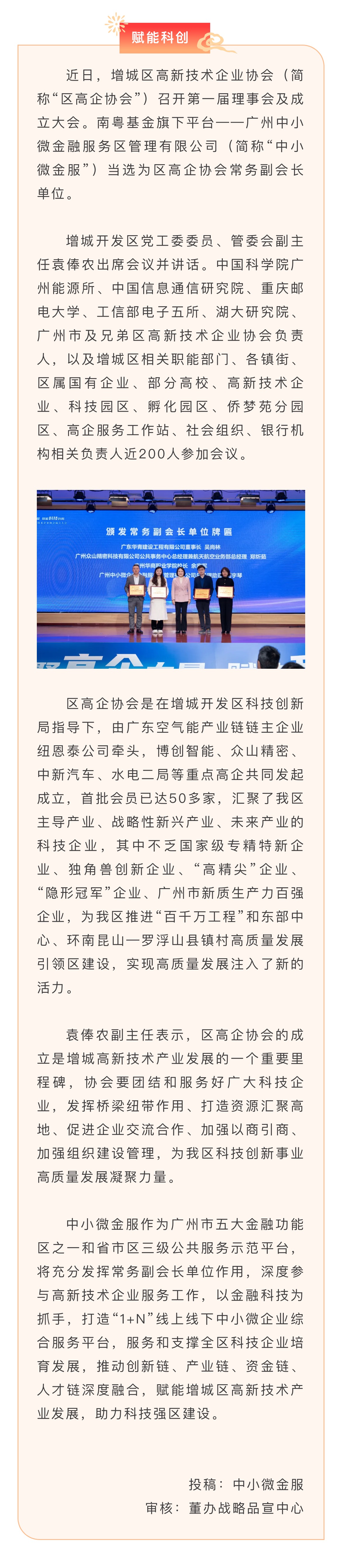 賦能科創(chuàng) 南粵基金旗下平臺當選區(qū)高企協(xié)會常務副會長單位