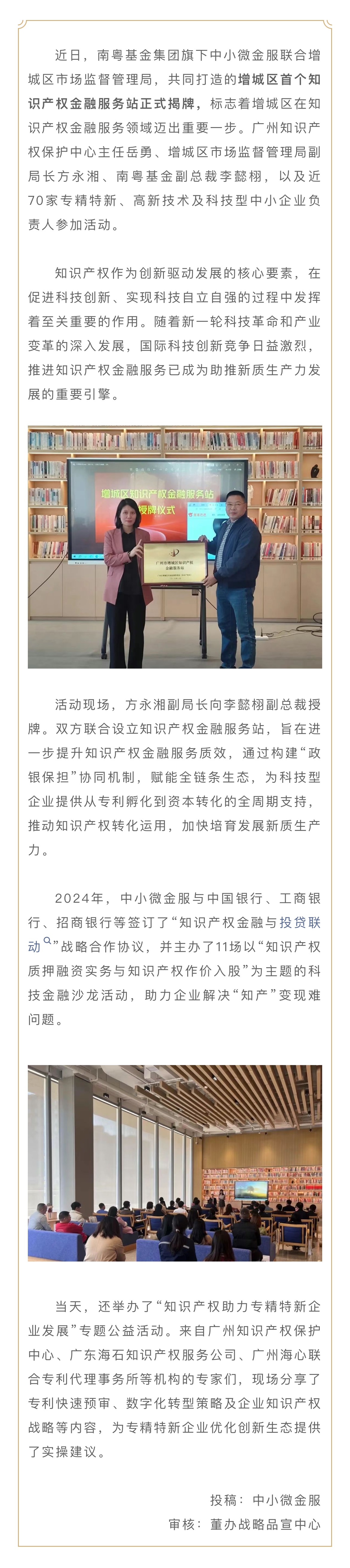 點(diǎn)“知”成金!南粵基金聯(lián)合打造增城區(qū)首個(gè)知識(shí)產(chǎn)權(quán)金融服務(wù)站