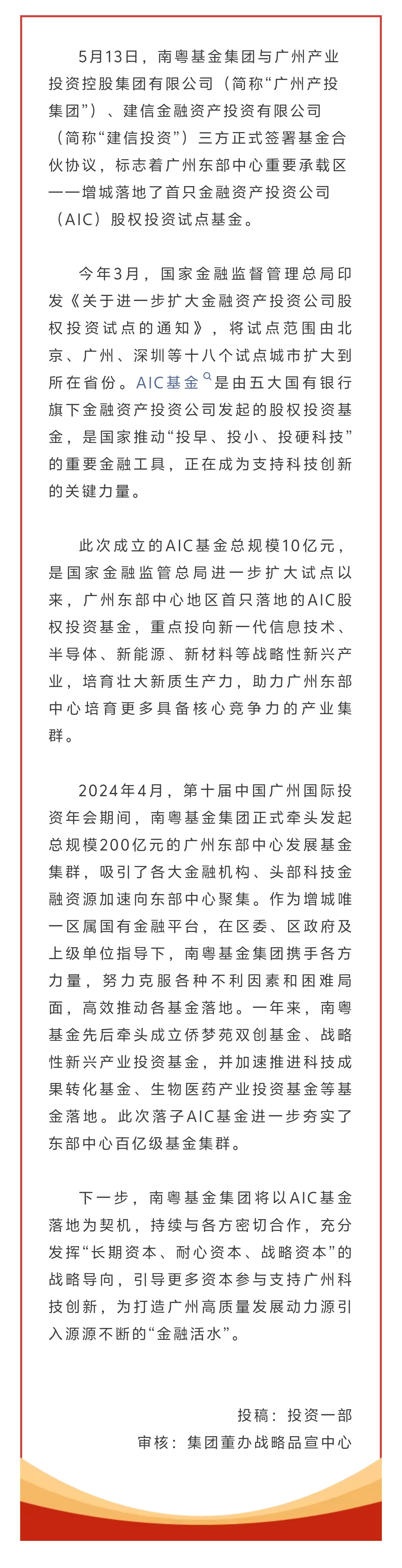 廣州東部中心AIC基金來了!