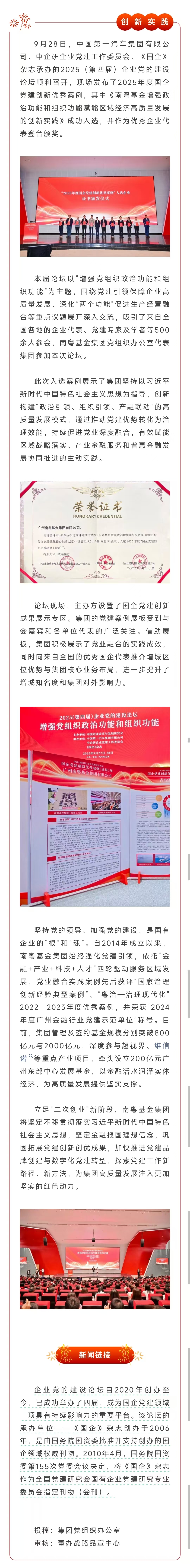 南粵基金集團(tuán)亮相2025(第四屆)企業(yè)黨的建設(shè)論壇并獲表彰