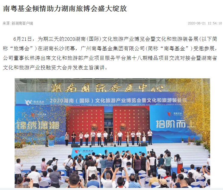 新湖南|南粵基金傾情助力湖南旅博會盛大綻放