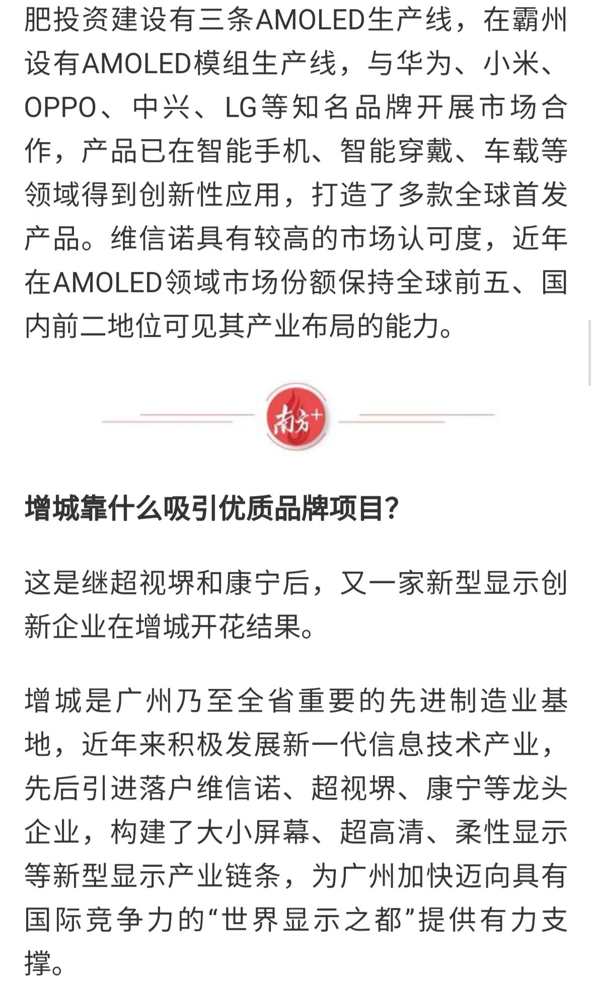 南方+|維信諾全柔AMOLED模組生產(chǎn)線點亮!廣州打造“世界顯示之都”再添新動力