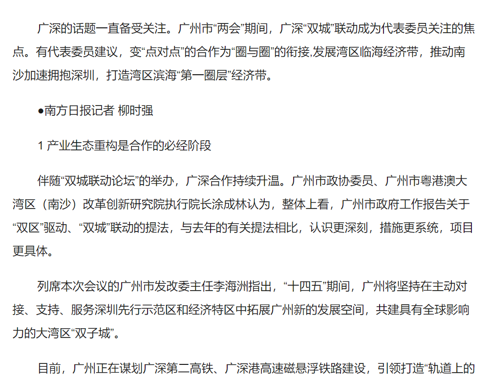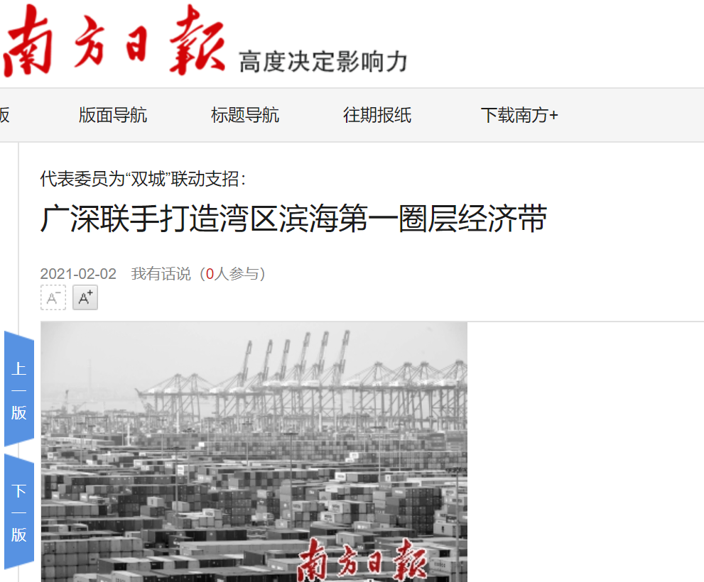 南方日報|代表委員為“雙城”聯(lián)動支招: 廣深聯(lián)手打造灣區(qū)濱海第一圈層經(jīng)濟(jì)帶