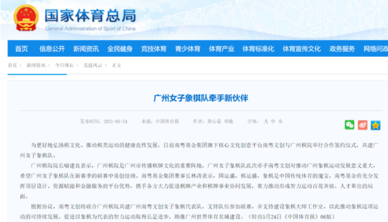 國(guó)家體育總局 | 廣州女子象棋隊(duì)牽手新伙伴