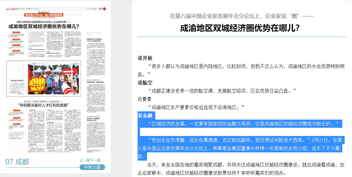 在第八屆中國企業(yè)家發(fā)展年會分論壇上,企業(yè)家說“圈”——成渝地區(qū)雙城經(jīng)濟(jì)圈優(yōu)勢在哪兒?